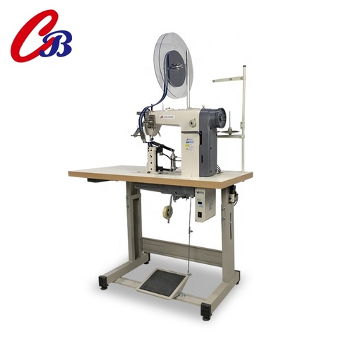 Alto cargo cama máquina de coser con una carpeta y dispositivo de corte para sweatband